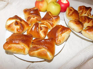 Nagyon szépek lettek. Érdekes. Szeretjük az almás sütiket, mégse jutott eszembe buktát tölteni vele, pedig milyen jó ötlet.